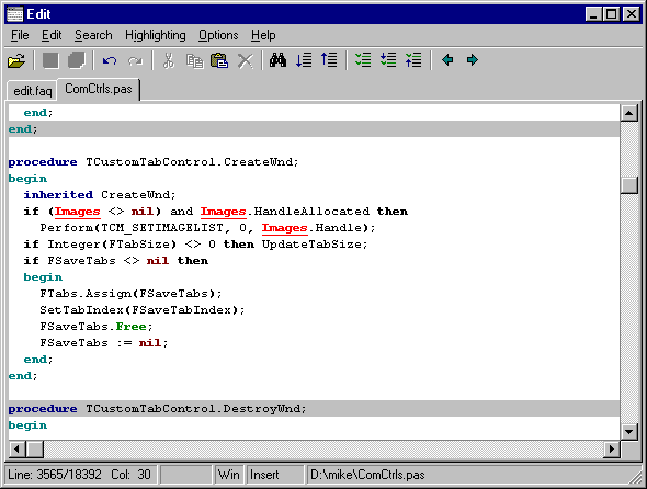 Versatile search facilities, fast executing and syntax highlighting let you